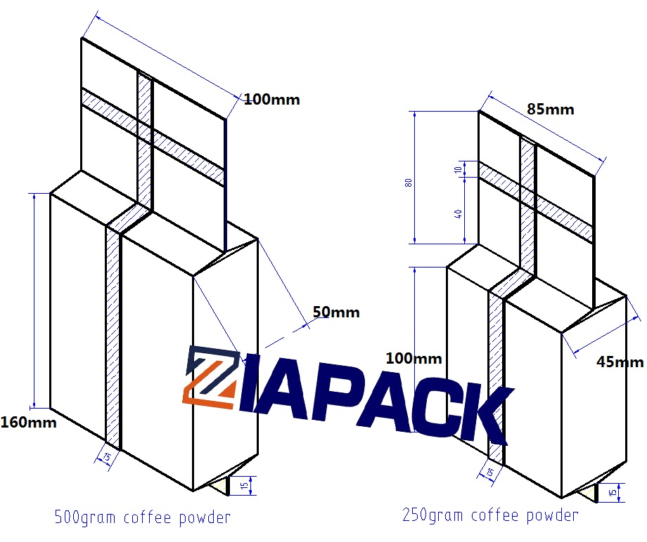 Αυτό το μηχάνημα περιλαμβάνει ένα σετ μηχανή συσκευασίας και σφράγισης κάθετης σακούλας ZL520. Ένα σετ μηχανή μέτρησης τρυπανιού ZL2000, ένα σετ μηχανή συσκευασίας διπλού θαλάμου κενού ZL100V2 και ένα σετ μεταφορέα εξόδου. Το μηχάνημα έχει τη λειτουργία σχηματισμού σακούλας, πλήρωσης προϊόντων, καθαρισμού σακούλας και σκούπισμα με ηλεκτρική σκούπα. Μπορεί να επιλέξει μηχανή κωδικοποίησης θερμικής μεταφοράς που είναι πιο δημοφιλής για την κωδικοποίηση ημερομηνίας σε σακούλα κενού από τούβλα καφέ. Αυτή η μηχανή χρησιμοποιείται ευρέως για τη συσκευασία χημικών φαρμακείων τροφίμων και άλλου προϊόντος σε σκόνη ή μικρούς κόκκους. Όπως η σκόνη καφέ, το αλεύρι σίτου σε σκόνη μαγιάς και ούτω καθεξής. Ολόκληρο το μηχάνημα υιοθετεί την άντληση μέσα στο προϊόν κενού. Ο βαθμός κενού είναι πολύ υψηλός και η ταχύτητα συσκευασίας είναι πολύ υψηλή μπορεί να φτάσει τα 8 σακουλάκια/λεπτό. Το τελικό προϊόν είναι πολύ ωραίο και έχει μεγάλη διάρκεια ζωής.
