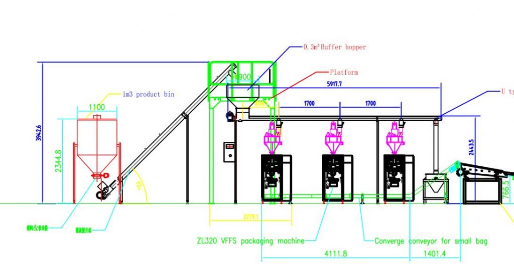 Το δευτερεύον μέρος είναι για τη μεσαία γραμμή μεταφοράς. συμπεριλαμβανομένου του δονούμενου και του οριζόντιου μεταφορέα για τη συλλογή όλης της μικρής σακούλας στον μεταφορέα τροφοδοσίας στο επόμενο βήμα