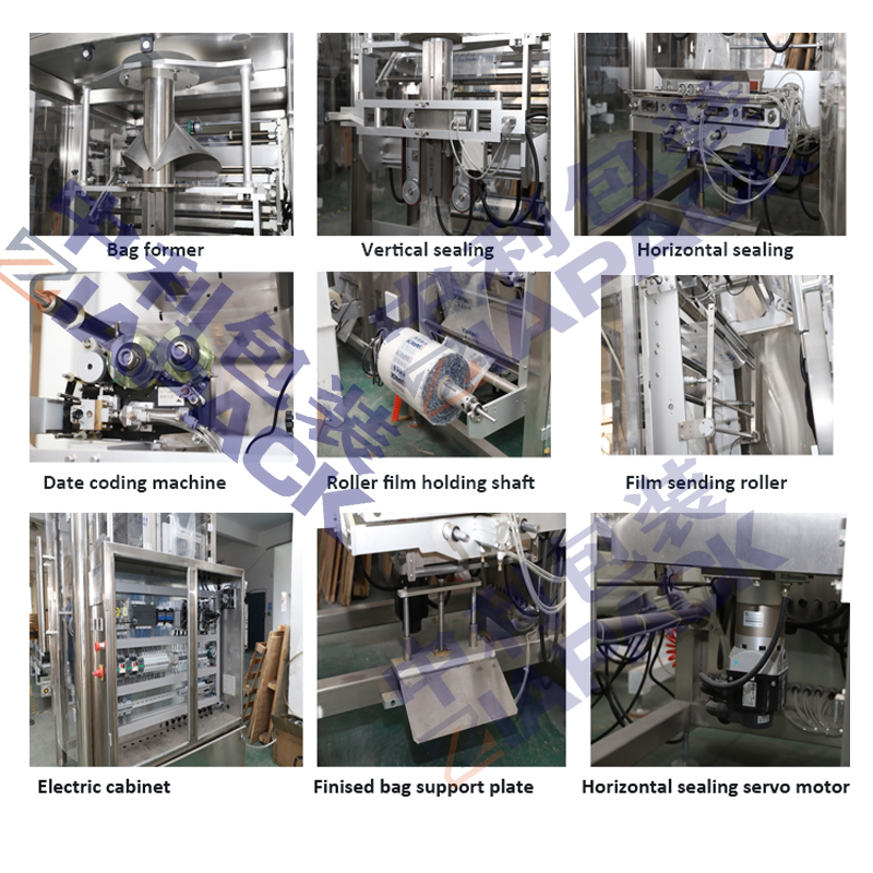 Είναι κατάλληλο για χρήση στη συσκευασία της υψηλής ακρίβειας και εύκολου εύθραυστου υλικού, όπως: φουσκωτό φαγητό, τραγανό ρύζι, πατατάκια, σνακ, καραμέλα, φιστίκι, ζάχαρη, φέτες μήλου, ζυμαρικά, σοκολάτα, ζωοτροφές, μικρά είδη κλπ.