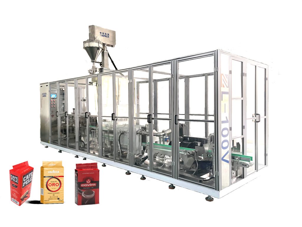 Αυτό το μηχάνημα περιλαμβάνει ένα σετ μηχανή συσκευασίας και σφράγισης κάθετης σακούλας ZL520. ένα σετ μηχανή ζύγισης διπλού κάδου ZL2000, μηχανή συσκευασίας κενού σετ ZL-100V και ένα σετ μεταφορέα εξόδου. Αυτή η μηχανή χρησιμοποιείται ευρέως για τη συσκευασία χημικών φαρμακείων τροφίμων και άλλων προϊόντων σε σκόνη ή σε μικρούς κόκκους. Όπως η σκόνη καφέ, η σκόνη μαγιάς και ούτω καθεξής. Ολόκληρη η μηχανή υιοθετεί την εσωτερική άντληση σε προϊόν κενού. Ο βαθμός κενού είναι πολύ υψηλός και η ταχύτητα συσκευασίας είναι πολύ υψηλή μπορεί να φτάσει τα 15 σακούλα/λεπτό. Το τελικό προϊόν είναι πολύ ωραίο και έχει μεγάλο ράφι ΖΩΗ.