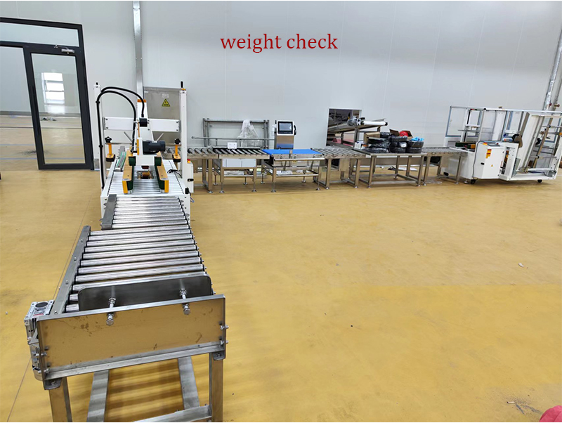 Αφού γεμίσετε τις σακούλες με κατεψυγμένα τρόφιμα, κάθε σακούλα ελέγχεται εκ νέου από έναν ανιχνευτή βάρους για να διασφαλιστεί ότι το βάρος ταιριάζει με το βάρος-στόχο και, στη συνέχεια, περνά από έναν ανιχνευτή μετάλλων για να διασφαλιστεί ότι δεν έχει αναμειχθεί μέταλλο σε κάθε σακούλα. Οι σάκοι στη συνέχεια μεταφέρονται στη γραμμή πλήρωσης χαρτοκιβωτίων.