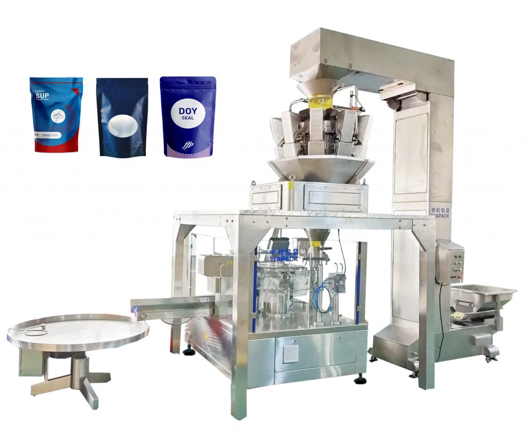 Η προ-κατασκευασμένη μηχανή πλήρωσης και σφράγισης σακουλάκια, αποτελούμενη από 8 σταθμούς εργασίας απόδοσης και σταθερότητας, δίνει έμφαση στη συσκευασία της τσάντας stand-up, της τσάντας φερμουάρ, της σακούλας και των διάφορων προκατασκευασμένων σακουλών. Συνεργάζεται με διαφορετικά συστήματα δοσομέτρησης (συνδυασμός ζυγοστάθμισης / γραμμικής ζυγοστάθμισης / κοχλιωτή βίδα / πλήρωσης εμβόλου) και αυτόματους μεταφορείς ανύψωσης, εφαρμόζεται ευρέως σε κόκκους, υγρό και σκόνη.