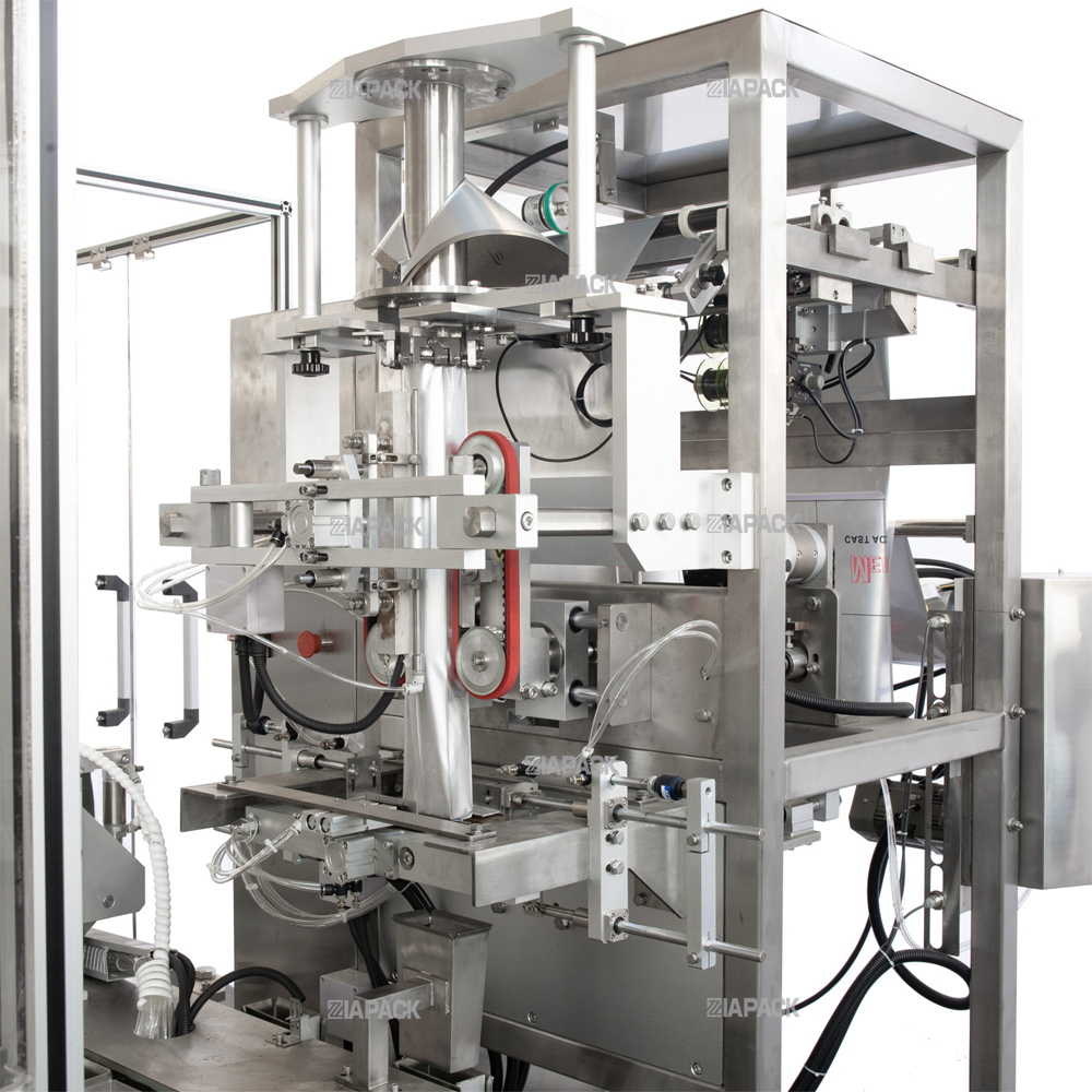 Αυτό το μηχάνημα περιλαμβάνει ένα σετ ανελκυστήρα κενού, ένα σετ μηχανή συσκευασίας και σφράγισης κάθετης σακούλας ZL520. Ένα σετ μηχανή ζύγισης διπλών κάδων ZLC4-2000, Μηχανή συσκευασίας ενός θαλάμου κενού ενός σετ ZL-100V Αυτή η μηχανή χρησιμοποιείται ευρέως για τη συσκευασία χημικών φαρμακείων τροφίμων και άλλο προϊόν σε σκόνη ή σε μικρούς κόκκους. Όπως ο καφές, η μαγιά σε σκόνη αλεύρι σίτου και ούτω καθεξής. Ολόκληρο το μηχάνημα υιοθετεί την άντληση του προϊόντος στο κενό. Ο βαθμός κενού είναι πολύ υψηλός και η ταχύτητα συσκευασίας είναι πολύ υψηλή μπορεί να φτάσει τα 8 σακουλάκια/λεπτό. Το τελικό προϊόν είναι πολύ ωραίο και έχει μεγάλη διάρκεια ζωής.