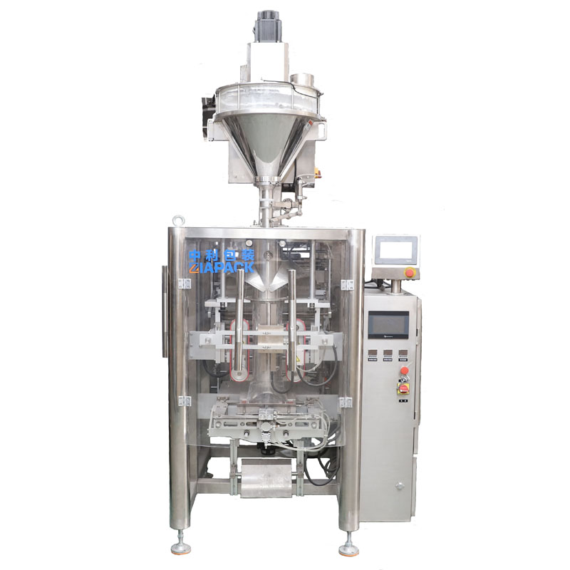 Αυτό το μηχάνημα είναι ειδικό σχέδιο για τη συσκευασία του προϊόντος σκόνης σε τσάντα κάτω από μαξιλάρι. Χρησιμοποιείται ευρέως για τη συσκευασία αλεύρου σίτου και χημικής σκόνης. Αυτή η μονάδα μηχανής περιλαμβάνει ένα σετ μηχανή πλήρωσης κοχλία ZL2000 ένα σετ μηχανή πλήρωσης κάθετης σακούλας ZL520. Ένα σετ Ανοιχτό στόμα Μηχάνημα μεταφοράς τσάντας και σύστημα ελέγχου. Ολόκληρο το μηχάνημα ελέγχει με PLC και λειτουργεί με έγχρωμη οθόνη αφής.